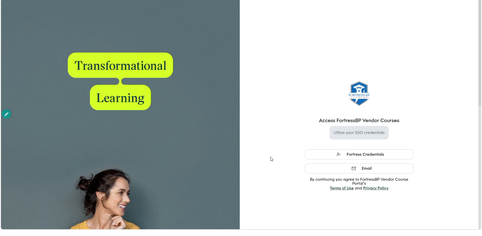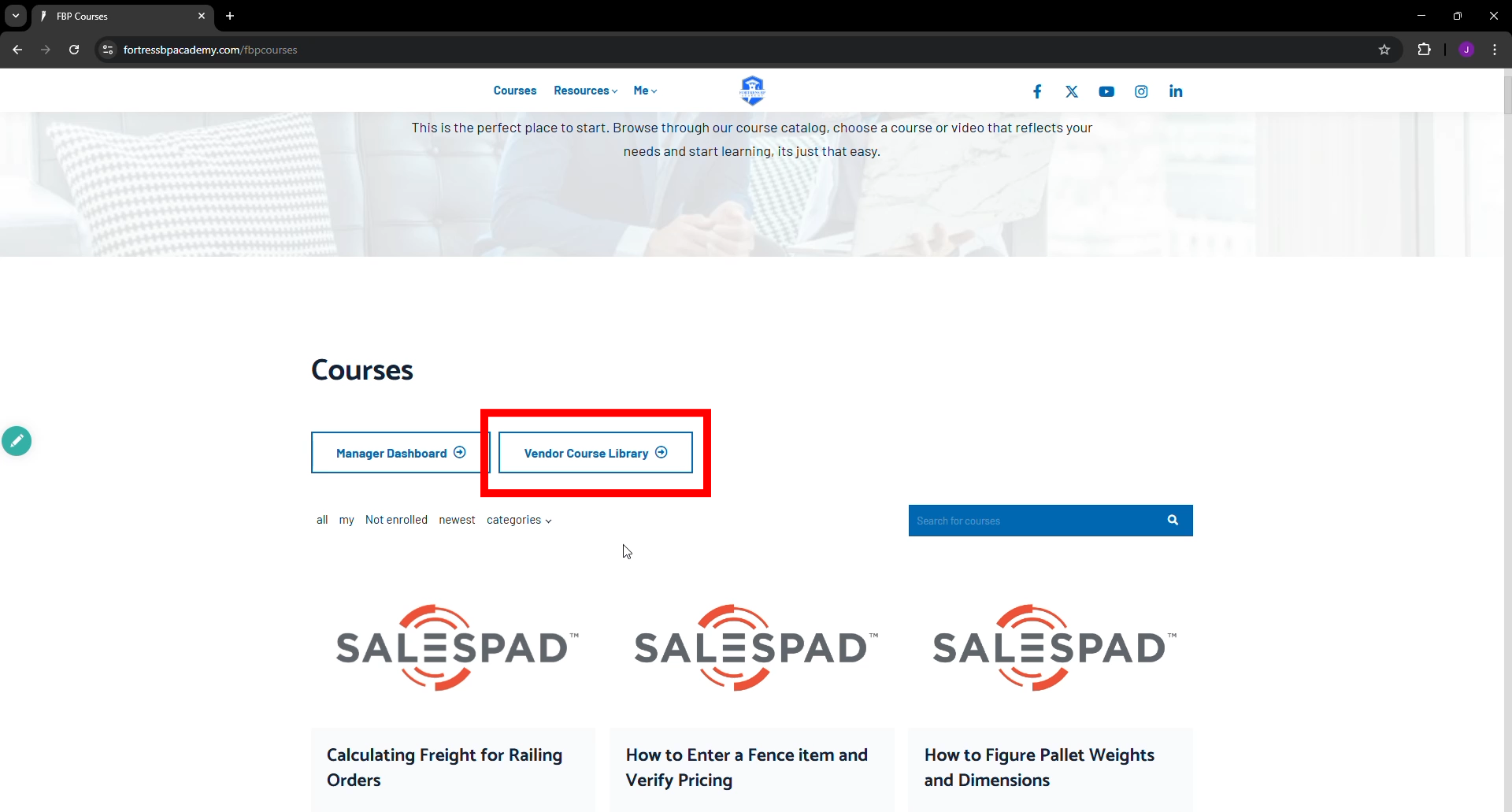 To access vendor course content a pass-through portal button is located here on the page.